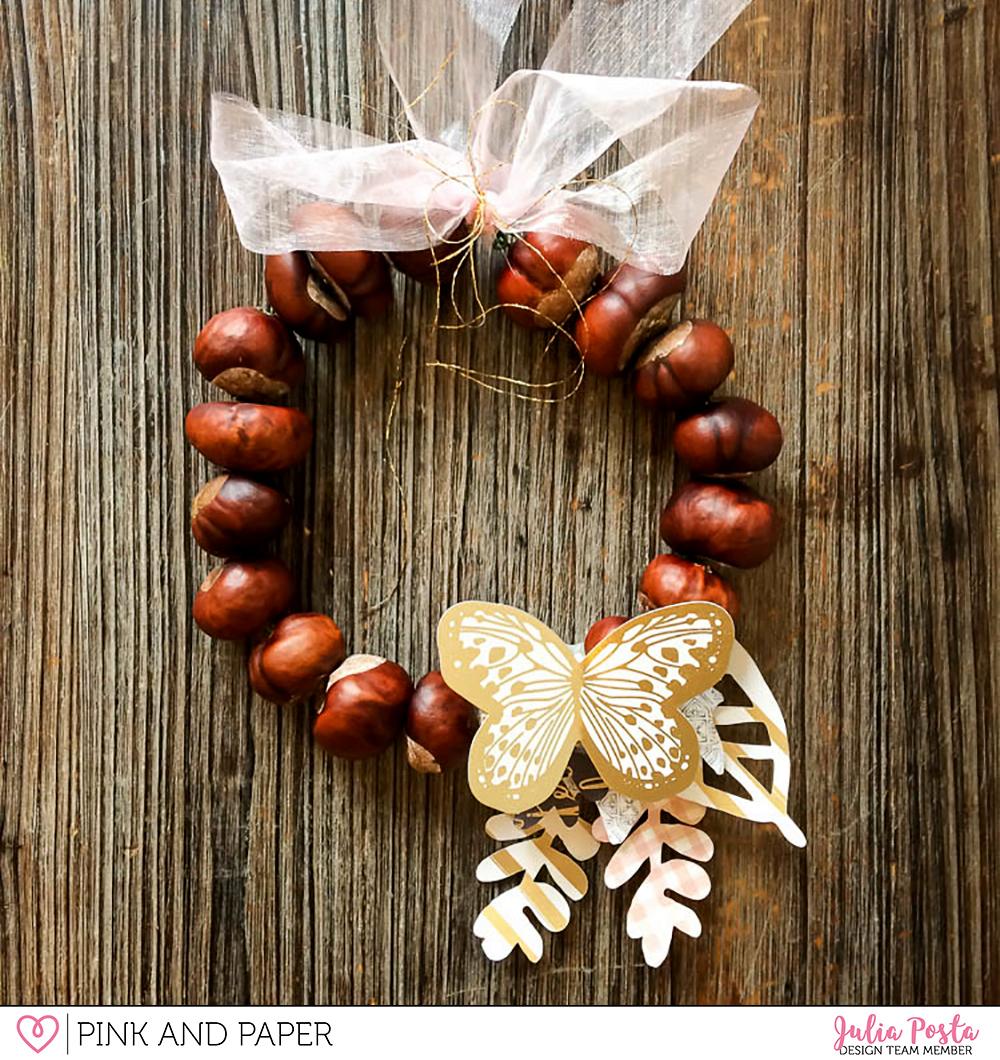 A másik dekortipp amit hoztam nektek ma, egy ajtódísz. Az alapot Igorral készítettük az ovi barkácsdélutánján, otthon pedig feldobtam egy kicsit a Pebbles Heart of Home gyönyörű pillangójával és a fenti kivágatokkal.