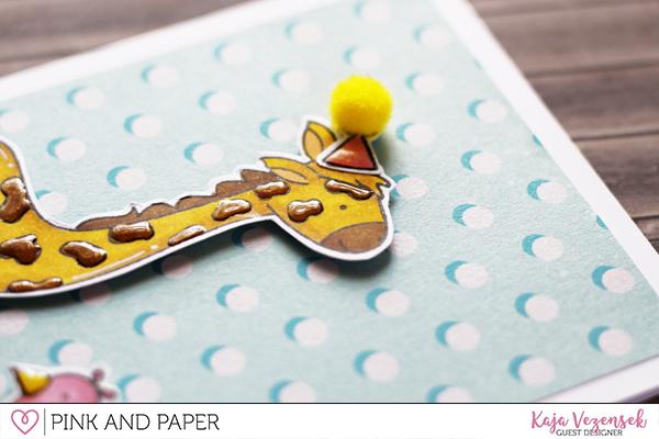 I felt like a card needs just a bit more dimension, so I used some Glossy Accents to make the spots on a giraffe pop out more. The only thing left to do was gluing everything together and the card was all finished!